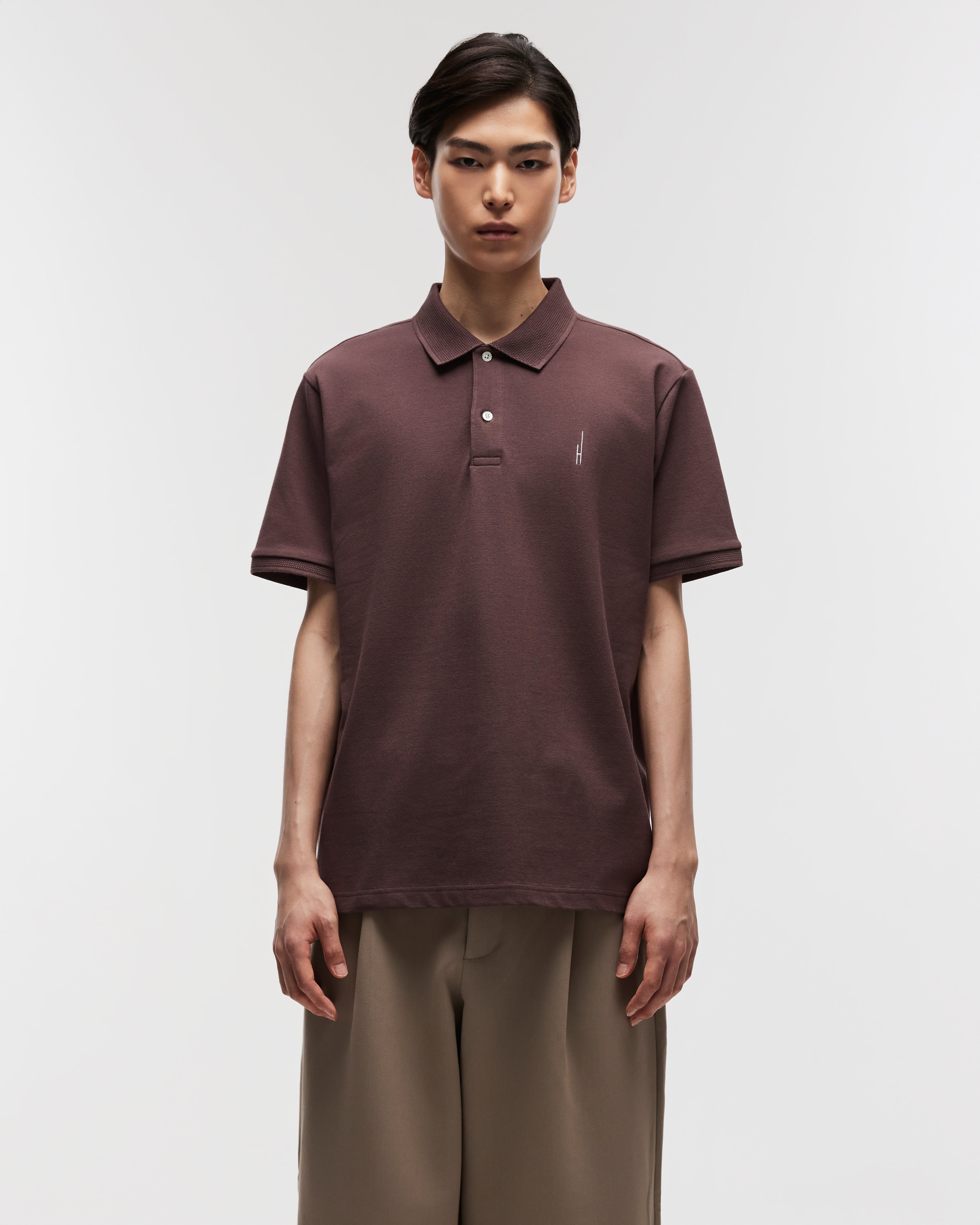 Cotton Pique Polo Tee in Brown