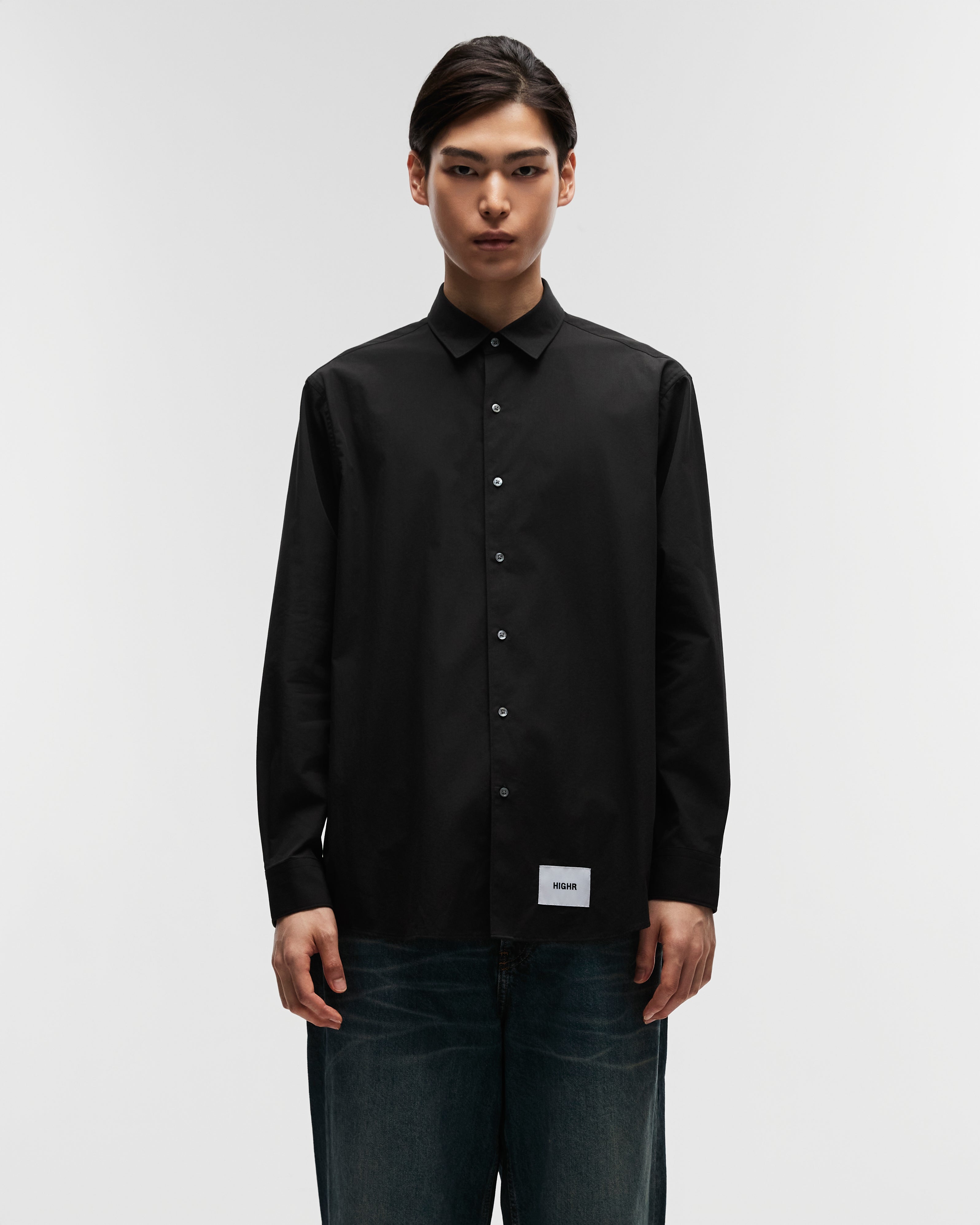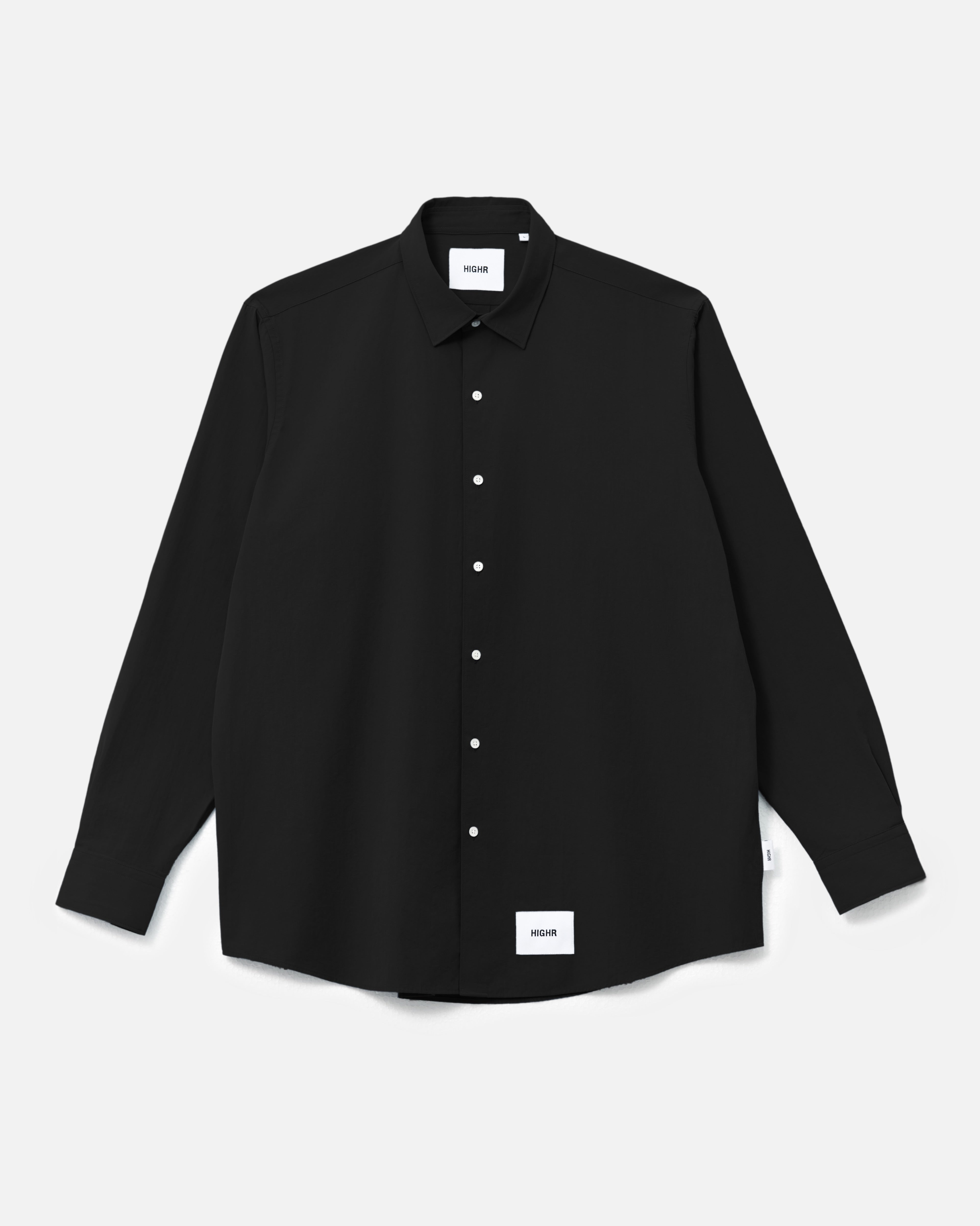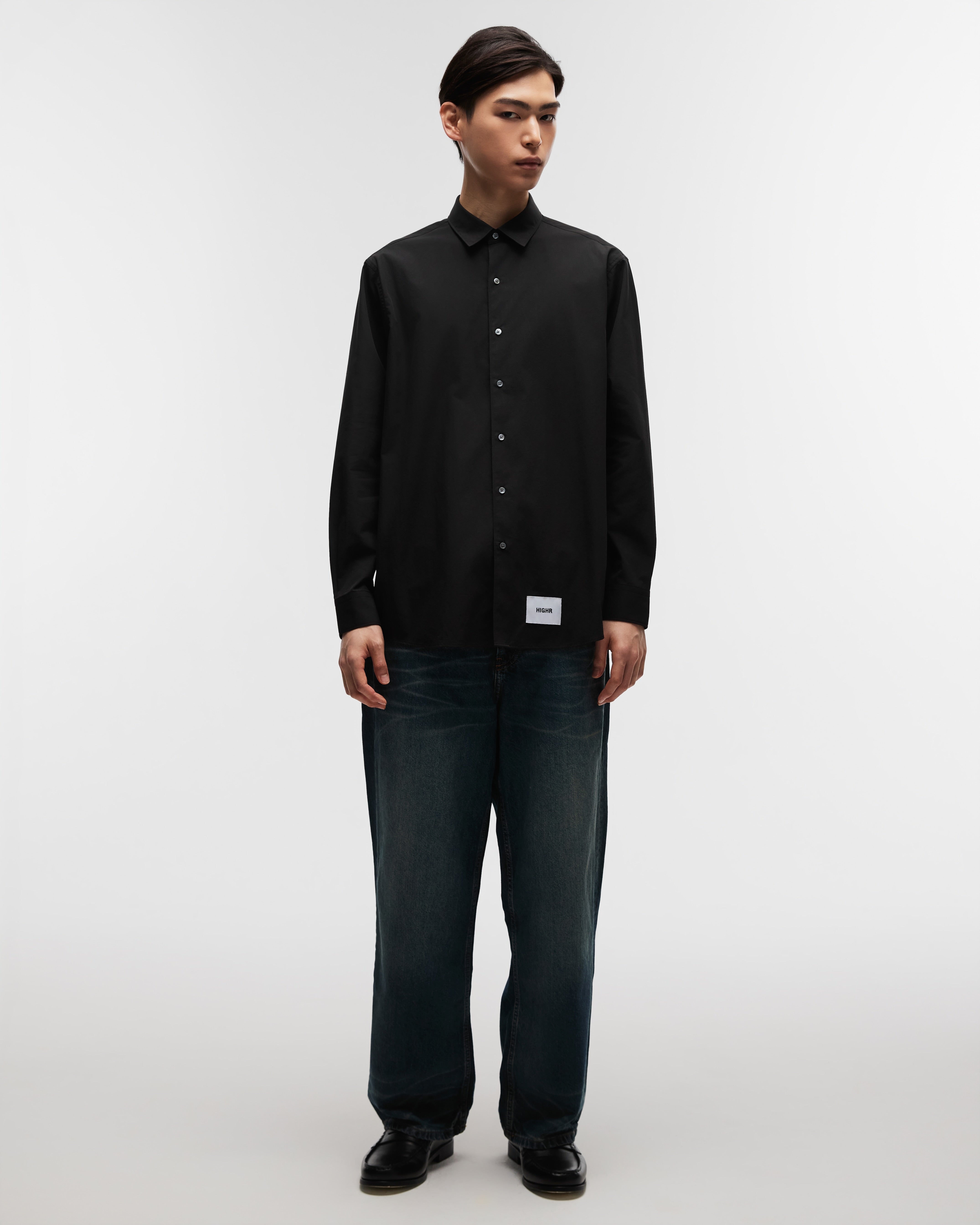 A Highr streetwear staple made from 100% cotton with a natural feel and clean drape. Designed with a pocketless front and smaller collar to balance the relaxed, oversized silhouette. Simple, versatile, and easy to wear.