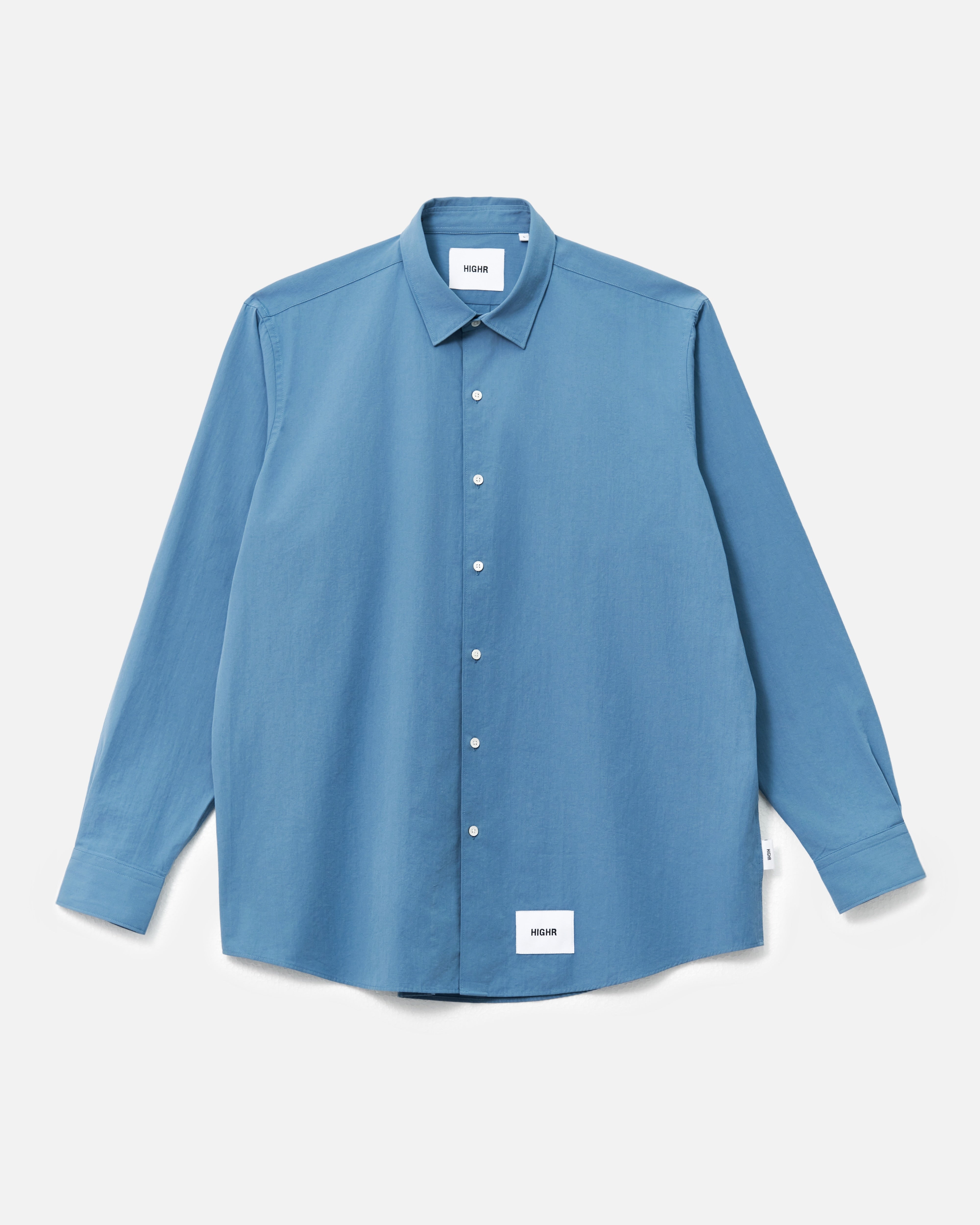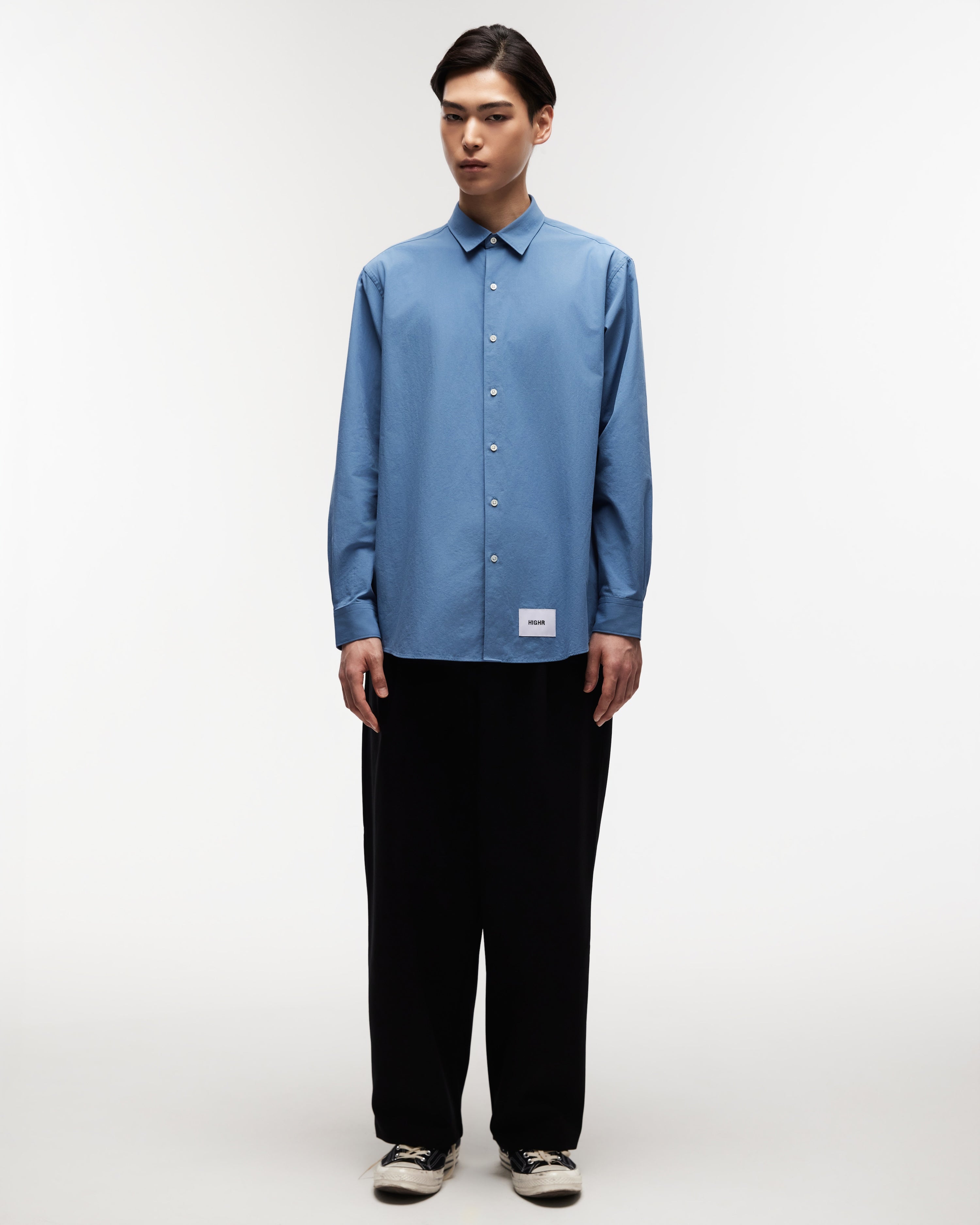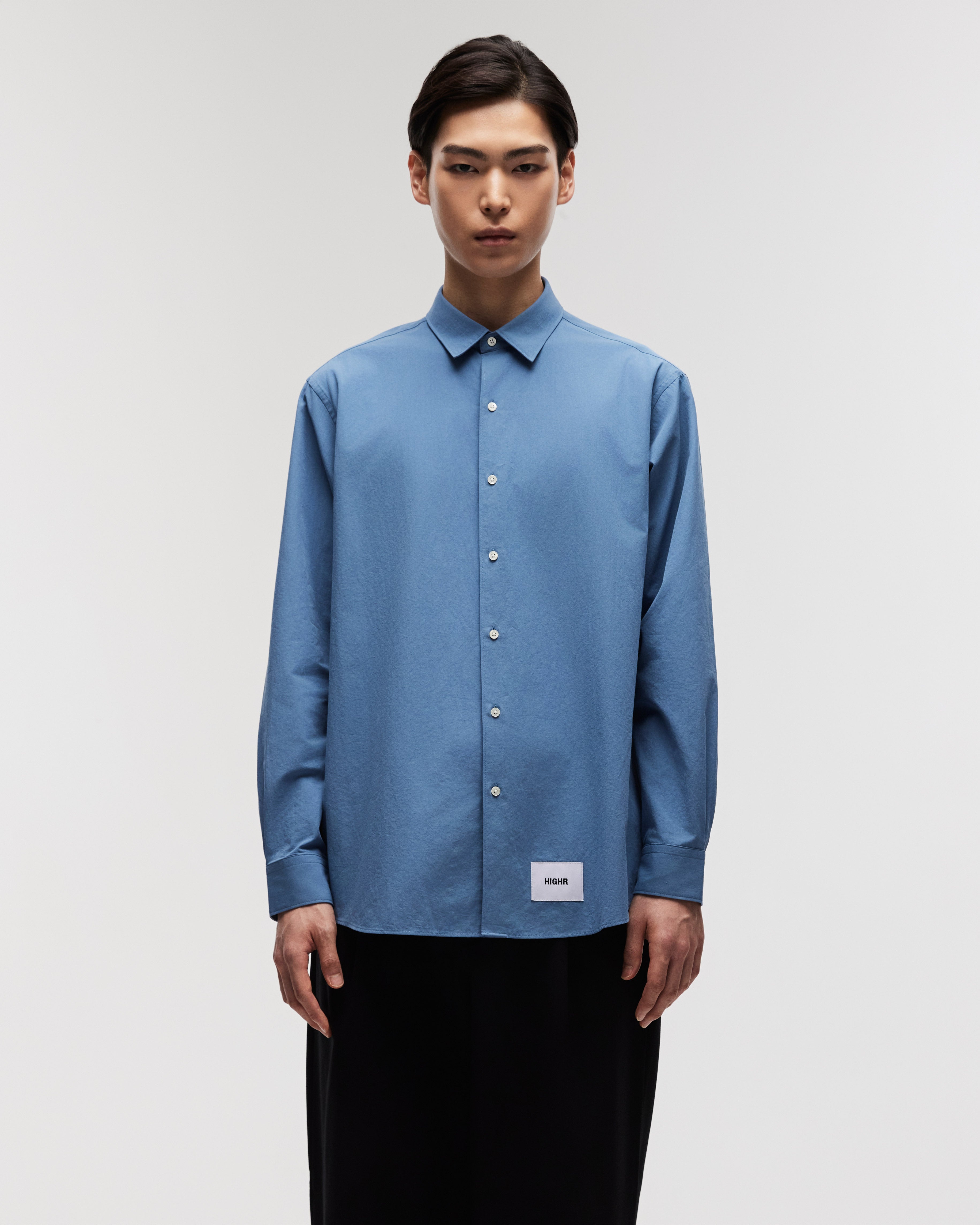 A Highr streetwear staple made from 100% cotton with a natural feel and clean drape. Designed with a pocketless front and smaller collar to balance the relaxed, oversized silhouette. Simple, versatile, and easy to wear.